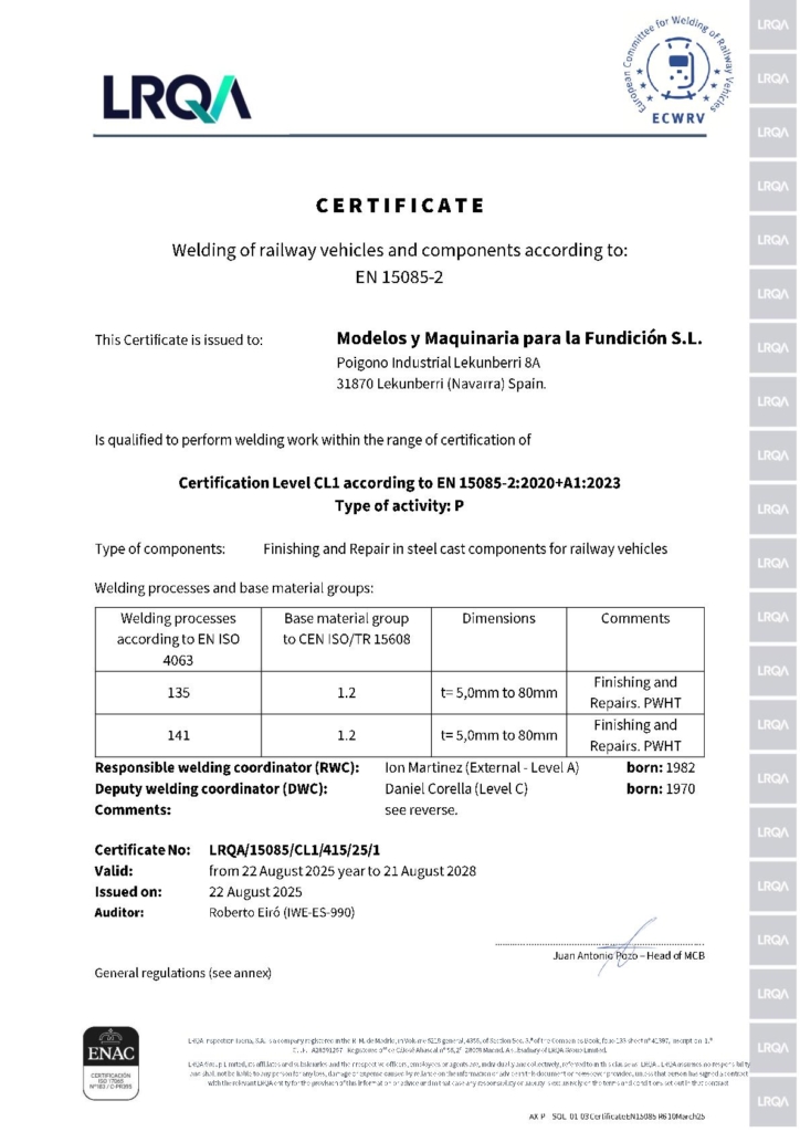 Certificado No.: LRQA/15085/CL1/415/25/1