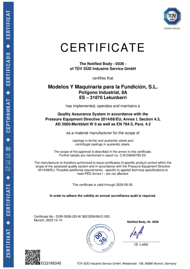 Certificado No.: DGR-0036-QS-W 382/2009/MUC-003